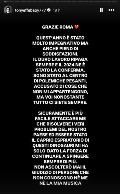 Nel mentre Tony Effe ha anche annunciato “un 2025 spietato” e di certo in molti attendono con ansia di scoprire come il rapper ci stupirà nel corso dei prossimi mesi.