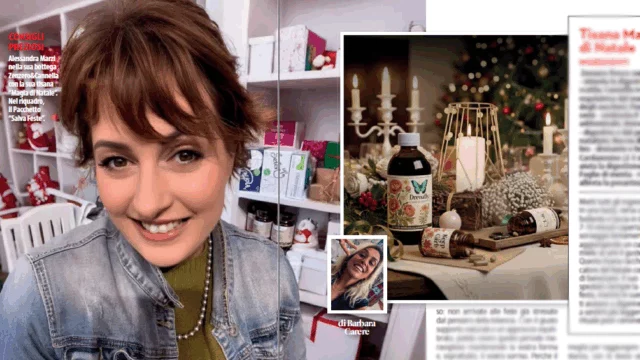 Il Pacchetto “Salva Feste” è un valido regalo per Natale che possono acquistare presso la tua bottega Zenzero&Cannella, però qual è la sua ricetta per eccellenza per Natale? «La mia Tisana Magia Di Natale. Se il Pacchetto “Salva Feste” è il mio alleato segreto per affrontare cenoni e pranzi, la mia tisana del cuore per questo periodo è quella che chiamo “Magia di Natale”. È perfetta da sorseggiare dopo i pasti abbondanti o la sera, quando ci si rilassa sul divano guardando un film natalizio».