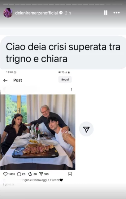 Poche settimane fa infatti TrigNO e Chiara hanno smesso di seguirsi sui social e a quel punto si è iniziato a parlare di una presunta rottura. Stando alle voci di corridoio emerse, i due si sarebbero separati e sarebbero addirittura arrivati a bloccarsi su Instagram. Ciò nonostante i diretti interessati non hanno mai confermato i gossip sul loro conto, preferendo affrontare la questione in maniera privata. Adesso, a distanza di quasi un mese dall’accaduto, qualcosa ha riacceso le speranze dei fan.