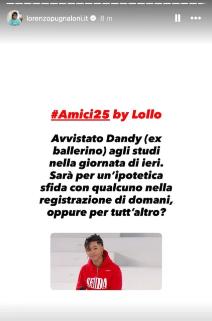 L’esperto di gossip ha infatti svelato che ieri il ballerino è stato avvistato negli studi di Amici 25. A oggi tuttavia non è chiaro il perché. Dandy infatti potrebbe essere stato chiamato per sostenere una sfida contro uno degli allievi. Non si esclude tuttavia un ritorno all’interno della scuola, con un eventuale banco aggiuntivo, proprio come accaduto anche per Alessio.