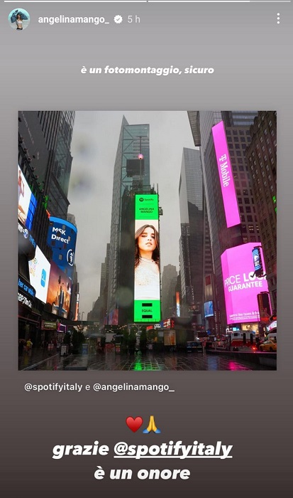 Il volto di Angelina Mango finisce sui grattacieli di Times Square