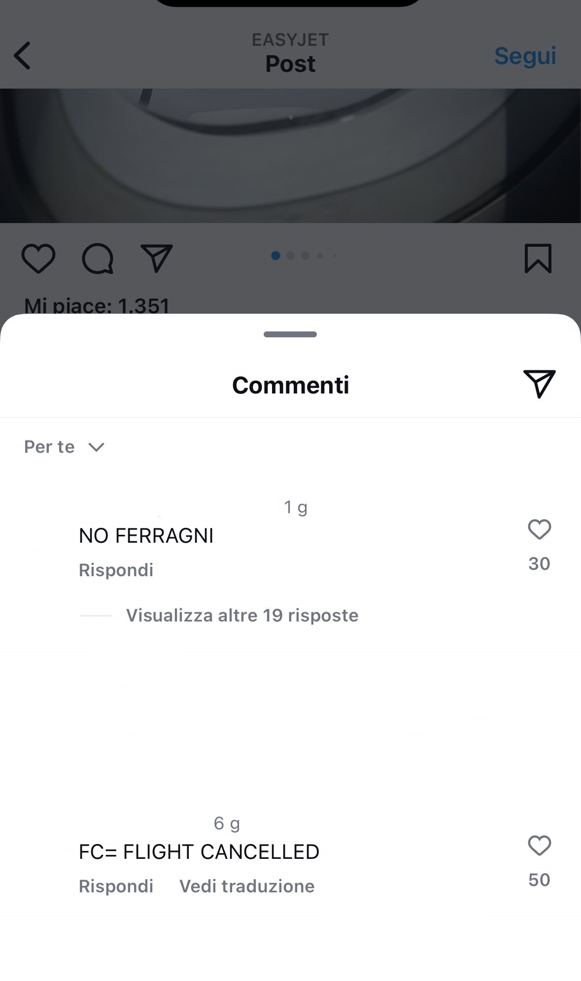 Purtroppo tutto ciò le si è ritorto contro e sotto i post del profilo Instagram di EasyJet sono comparsi centinaia di commenti contro l’influencer. Qui sotto possiamo vedere alcune foto in cui notiamo dei riscontri negativi, all’interno dei quali la gente prega la compagnia aerea di non farsi sponsorizzare dalla Ferragni.