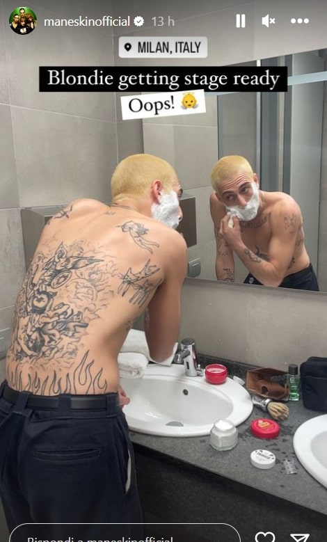 Qui sotto possiamo vedere l’immagine pubblicata nelle Stories del social fotografico. Si legge: “Blondie getting stage ready, oops“, che si traduce in “Il biondino si prepara a salire sul palco“. Vi che cosa ne pensate? Vi piace di più adesso, stava meglio prima oppure secondo voi è sempre affascinante? Diteci la vostra facendocelo sapere con un commento.