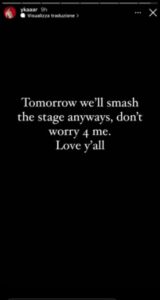 Questa news ha provocato diverse reazioni e i fan si sono detti preoccupati che l’esibizione di Damiano David e colleghi potesse saltare a causa di questo imprevisto. Il frontman su Instagram ha deciso di intervenire con queste poche parole: