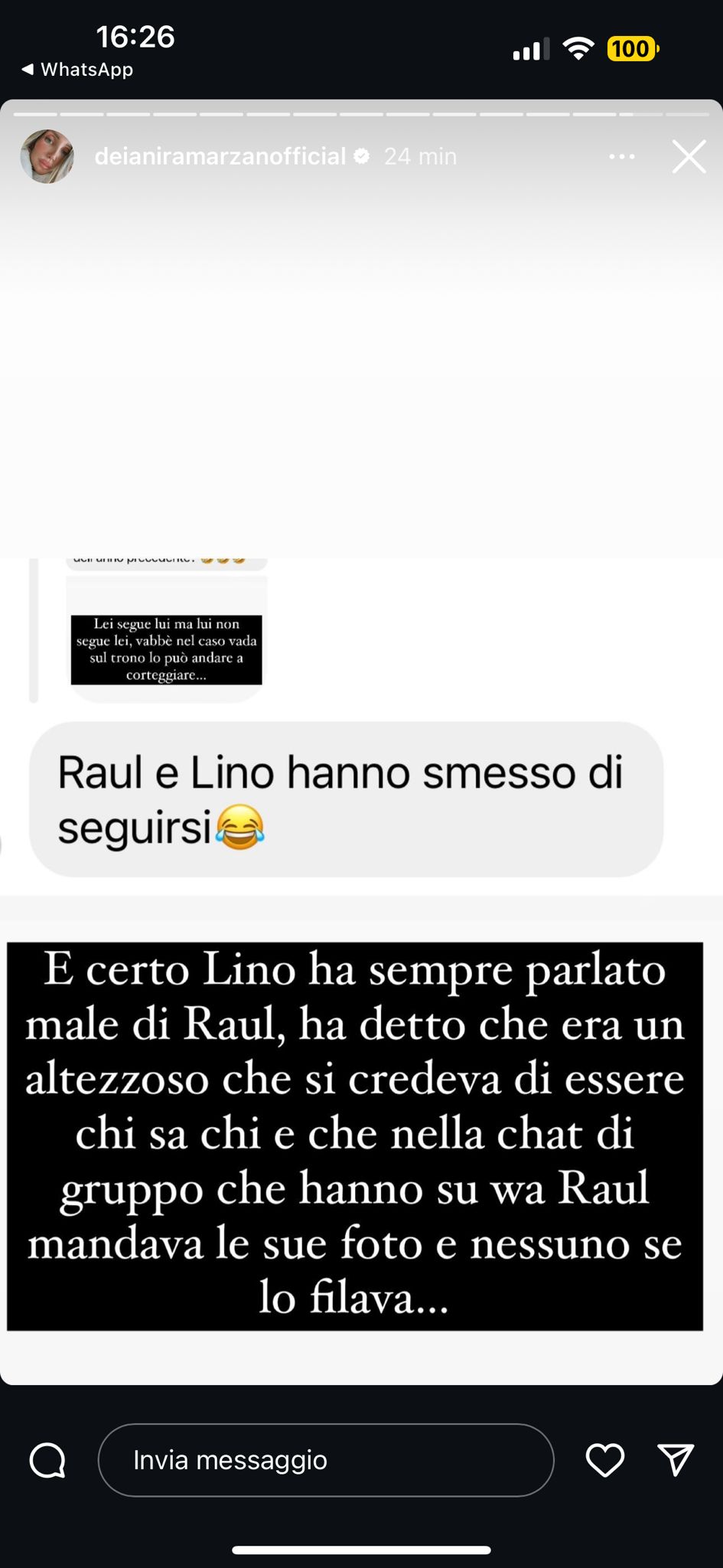 A distanza di qualche tempo dalla segnalazione arrivata a Deianira Marzano, quest’ultima torna con un nuovo scoop. Stando alla rivelazione di una sua follower parrebbe che Lino e Raul Dumitras abbiano smesso di seguirsi su Instagram. L’esperta di gossip ha poi affermato: