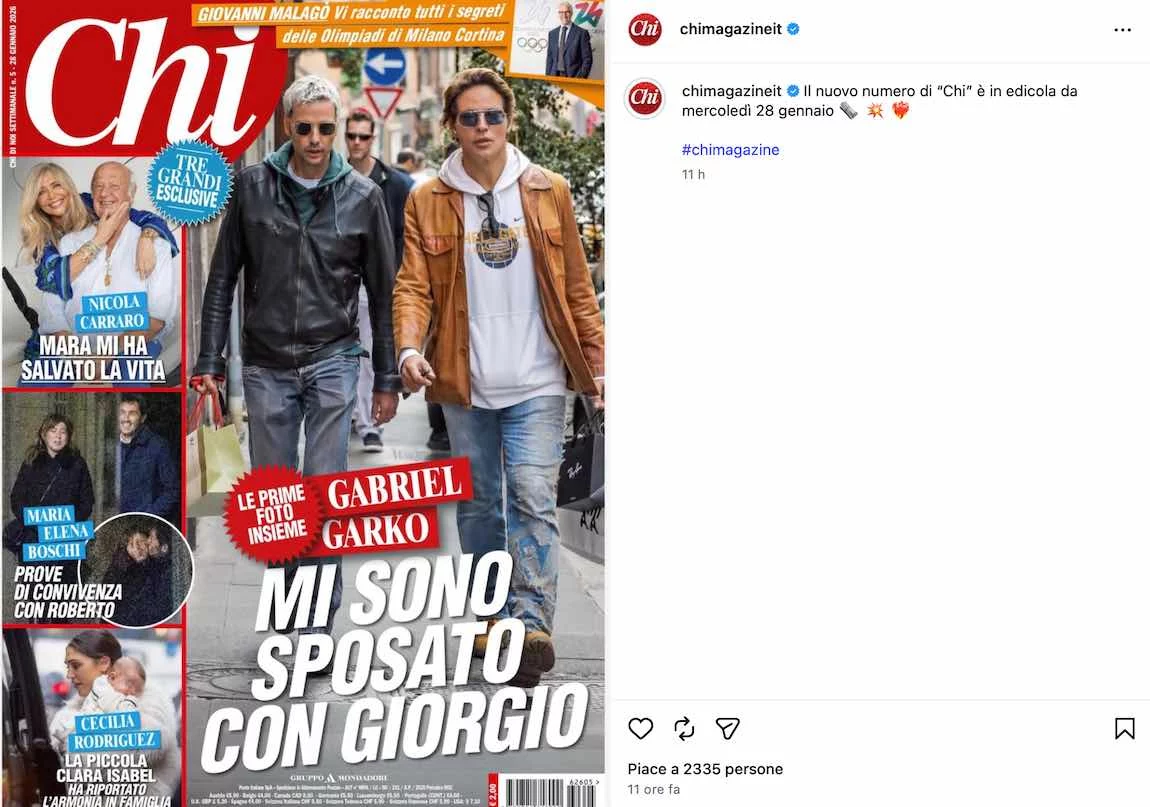 In queste ore intanto, per la prima volta, Gabriel Garko è stato paparazzato insieme al marito Giorgio. A pubblicare lo scatto è stato il settimanale Chi e in breve la foto è diventata virale.