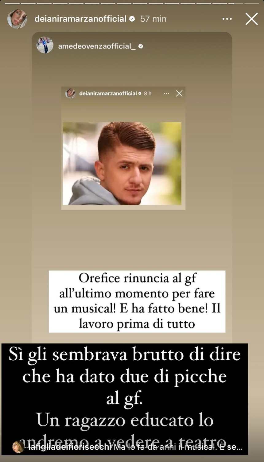 Stando a quanto rivelano Deianira Marzano e Amedeo Venza, sembrerebbe che un celebre attore di Mare Fuori all’ultimo momento abbia rifiutato il Grande Fratello. Di chi parliamo? Nientemeno che di Antonio Orefice. Secondo i due esperti di gossip, il celebre volto di Totò avrebbe detto di no al reality show in vista di un musical che andrà in scena nei mesi a venire. A causa degli impegni lavorativi dunque l’attore sarebbe stato costretto a rinunciare alla trasmissione.
