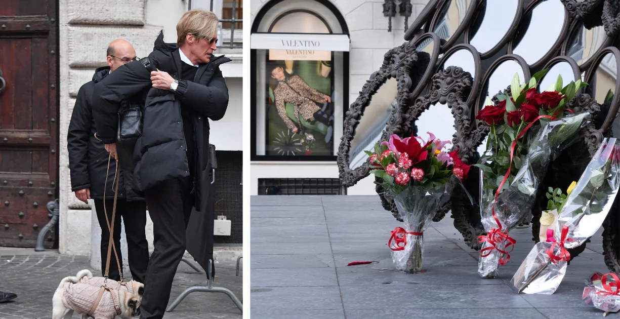 Poi compare Bruce Hoeksema. Silenzioso come sempre, mai alla ribalta, sempre un passo indietro. In braccio ha i carlini di Valentino. Porta via i due cagnolini. Sale su un’auto nera. Dice soltanto: “Sono devastato”. Non aggiunge altro. Non ne ha bisogno. Per chi lo conosce, è sempre stato così: discreto, riservato, dietro Valentino, per amore. Sempre.