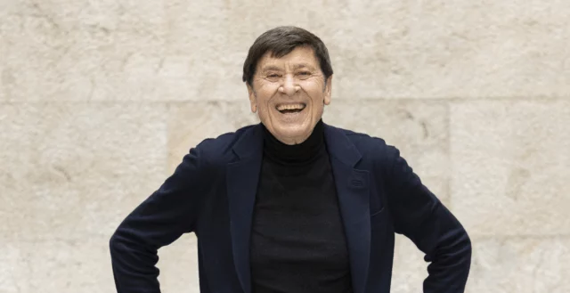 Un intramontabile Gianni Morandi, essenziale in blu e pullover a mezzo collo, ha regalato sorrisi ai fotografi, incarnando quell’eleganza sussurrata che non ha bisogno di gridare per farsi notare.