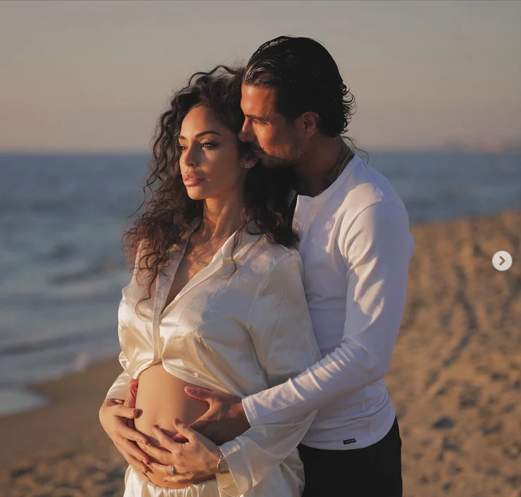 Raffaella Fico e Armando Izzo hanno mandato in tilt i social con una serie di foto che sembrano uscite da un servizio di alta moda… ma con un pizzico di romanticismo in più. Sdraiati sulla sabbia, avvolti in un dolce abbraccio carico di passione, i due mostrano con orgoglio il pancione nudo della showgirl, accarezzandolo come un piccolo tesoro in arrivo.