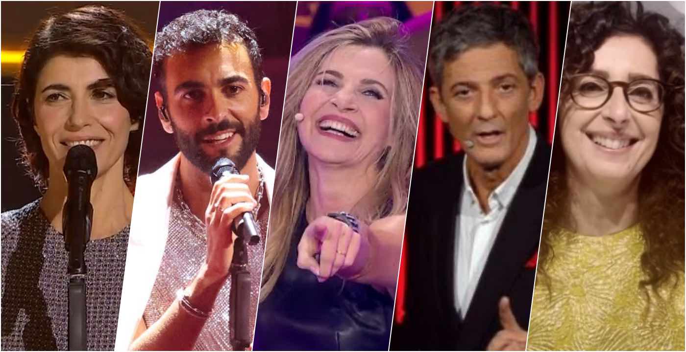 Quest’anno Amadeus ha scelto al suo fianco non solo l’amico di sempre Rosario Fiorello (per la serata finale), ma anche altri volti noti amatissima. Si passa da Marco Mengoni a Giorgia e ancora a Lorella Cuccarini e Teresa Mannino.