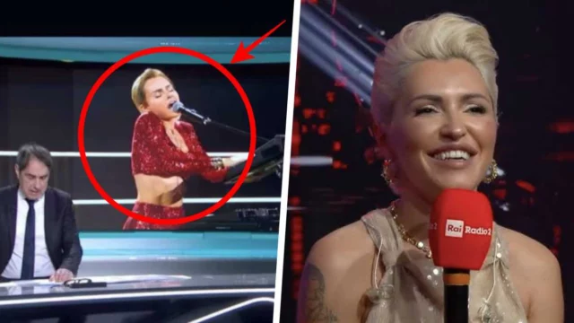 Ed è qui che è arrivata la gaffe. Mentre pronunciava queste parole, infatti, sul monitor è spuntata fuori l’immagine di Maryna, influencer e concorrente di Tale e Quale Show che ha imitato proprio l’artista in una delle puntate.