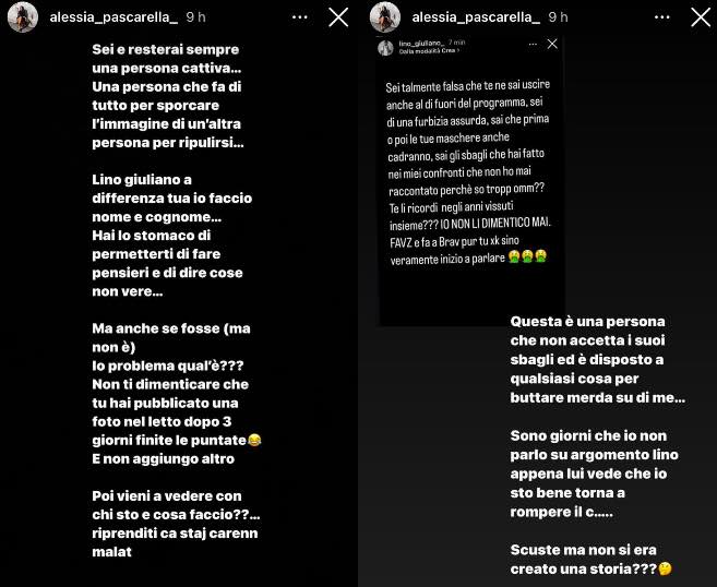 Ma lo sfogo di Alessia Pascarella non si è limitato a quelle parole, dato che ci sono delle altre cose che ha voluto esternare pubblicamente. L’ex volto del reality show ha attaccato Lino dichiarando quanto sia, secondo lei, una “persona cattiva”. Per poi aggiungere che “fa di tutto per sporcare l’immagine di un’altra persona per ripulirsi”.