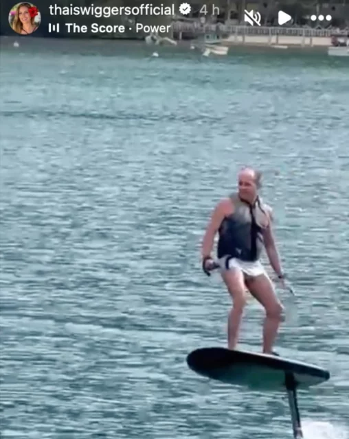 Per dimostrare che il suo “compagno” gode di ottima forma fisica e spirito giovanile, Thais ha condiviso un video in cui l’uomo di 65 anni si mostra mentre fa surf.