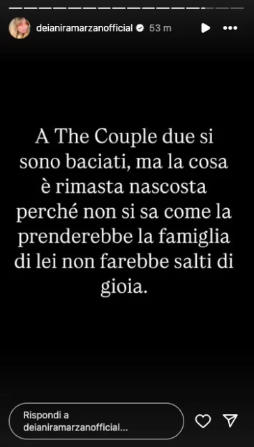 Lunedì su Canale 5 ha preso il via la prima edizione di The Couple. Sebbene gli ascolti debbano migliorare ancora e possono solo crescere, la puntata d’esordio ha fatto chiacchierare per delle gaffe, ma anche per alcuni gossip. E di pettegolezzi si parla ancora una volta, dato quanto scritto da Deianira Marzano sul suo account di Instagram.